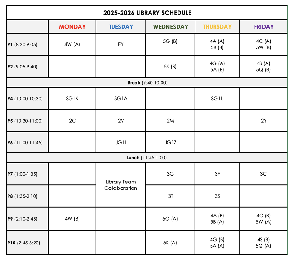 Elementary Library: Library Schedule